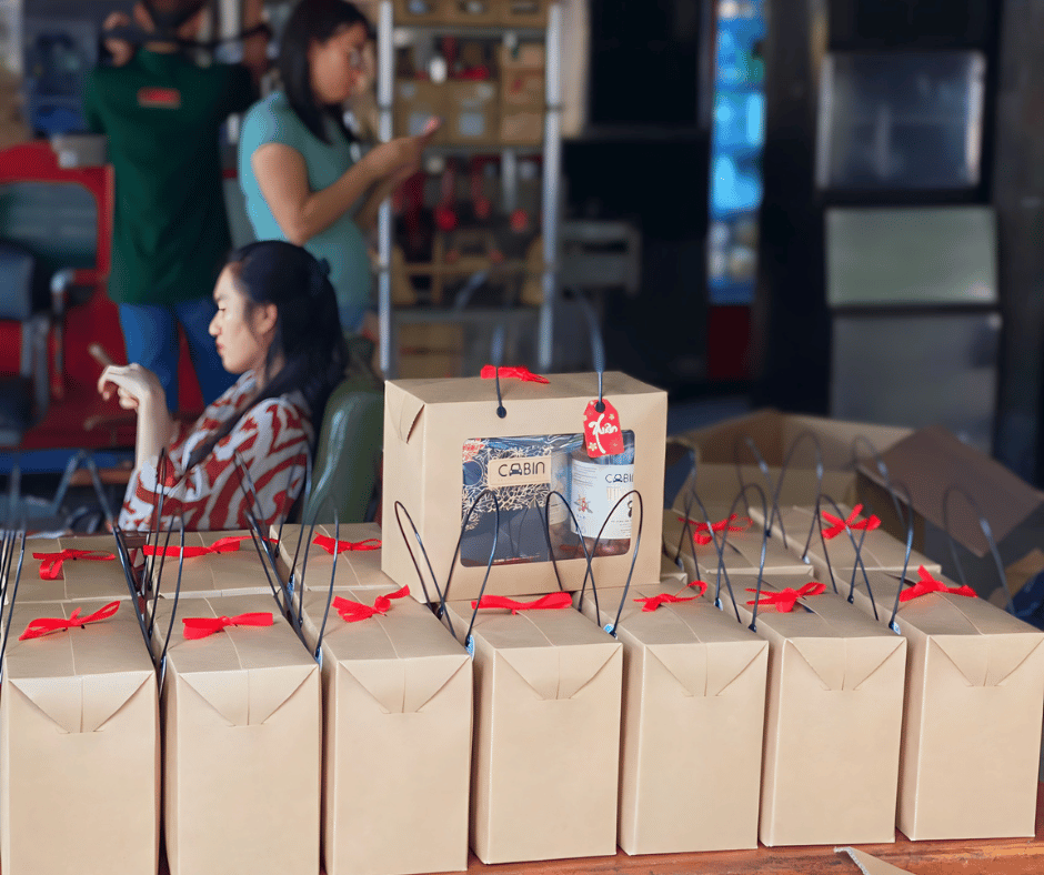 Mới những ngày đầu triển khai CABIN đã được các anh chị khách hàng ủng hộ. Tuy việc gói quà hoàn toàn bằng thủ công nên mất khá nhiều thời gian, nhưng nhân viên CABIN rất vui mừng vì được khách hàng, công ty "chọn mặt gửi vàng". Mong rằng khi nhận được những phần quà trên tay anh/chị khách hàng sẽ hài lòng đón nhận và trao đi yêu thương cũng như giới thiệu sản phẩm CABIN đến với mọi người nhé.